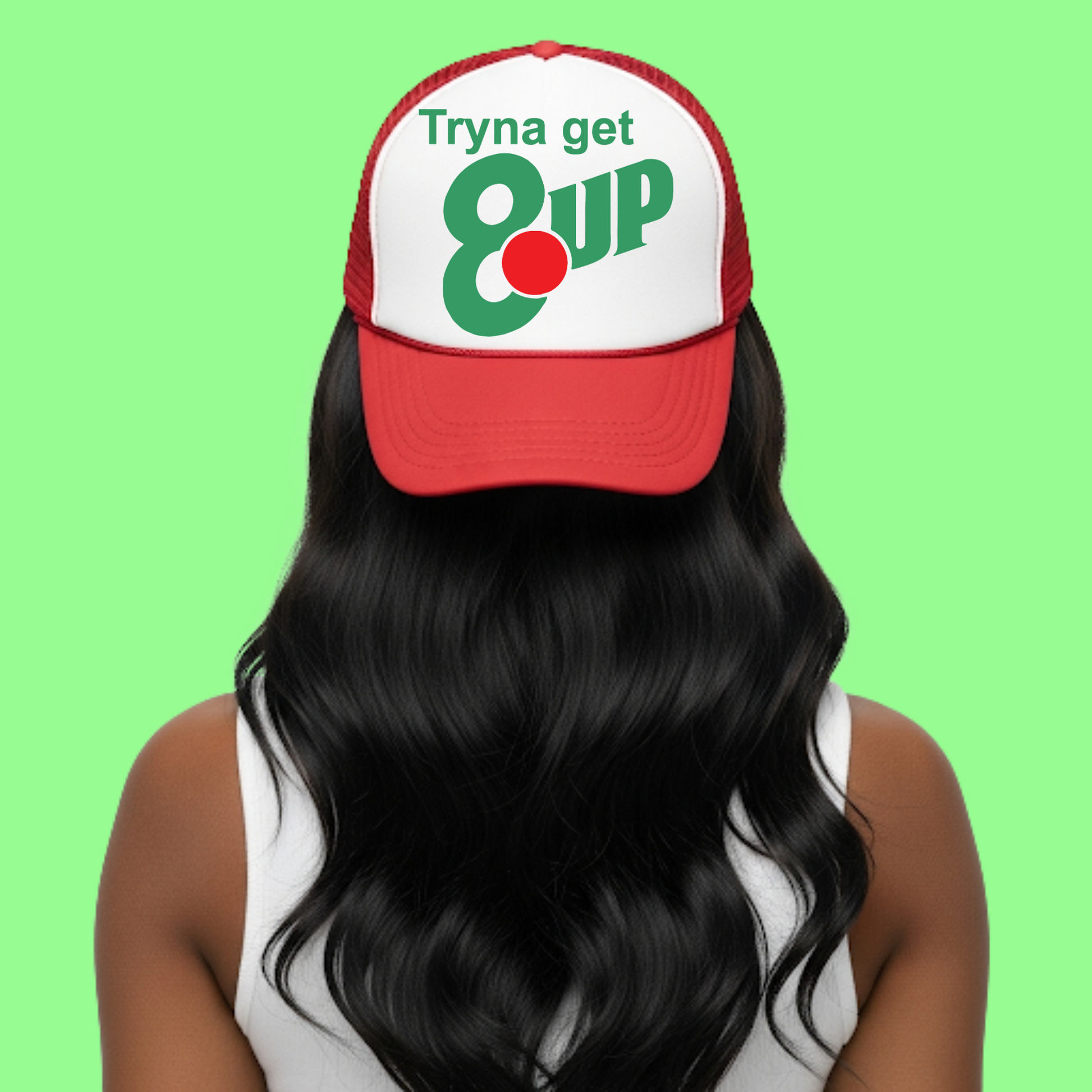 Feeling bold, motivated, and just a lil’ spicy? The Tryna Get 8UP trucker hat is the ultimate vibe check. This hat speaks for the flirters the glow-getters, and anyone out here making moves.